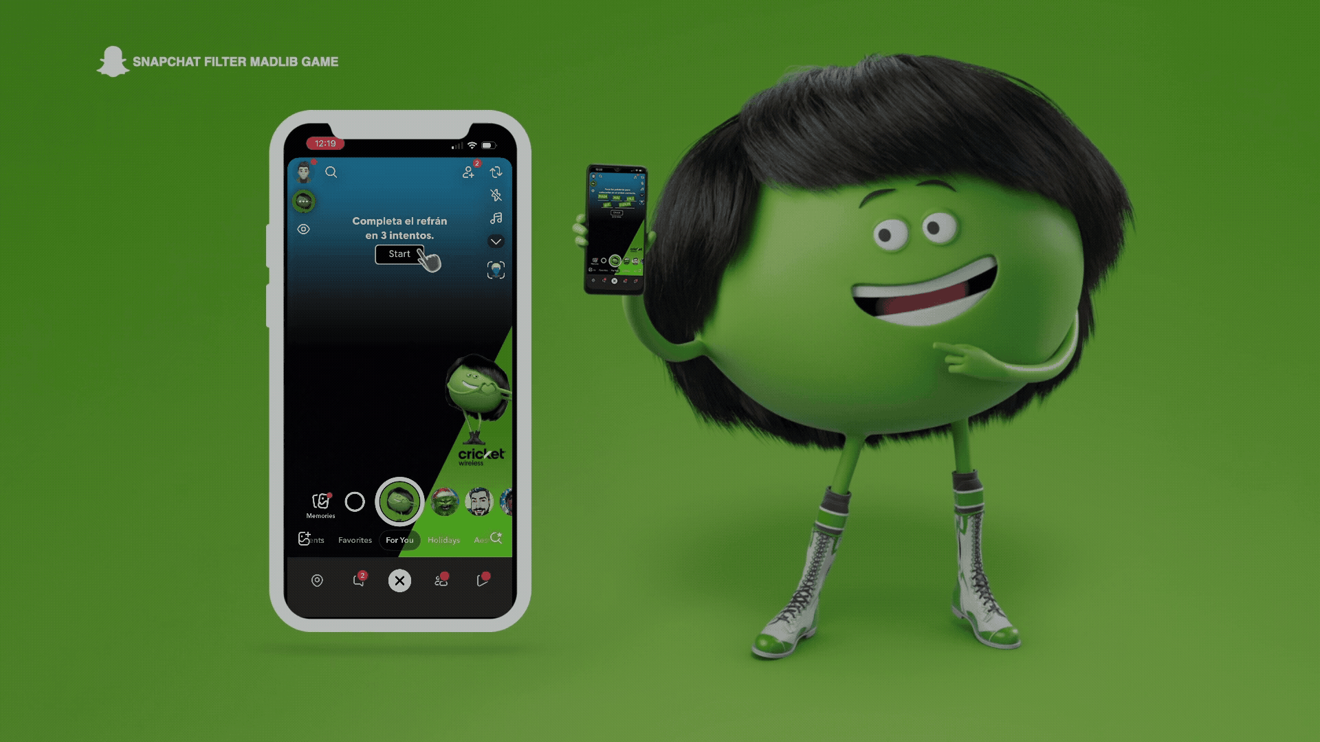 Cricket Wireless’ Mad Libs Snapchat filter was more than just an ordinary filter; we transformed it into a game. Users had the opportunity to fill in the blanks and unlock hilarious phrases in a super fun way. By taking well known Hispanic sayings and turning them into a Mad Libs game, the filter truly engaged people, encouraging them to share and connect with their culture. This creative twist not only sparked laughter but also fostered community engagement, creating a delightful experience that perfectly blended fun and connection for everyone!