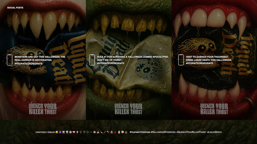 Quench Your Killer Thirst is a Halloween campaign that taps into the monstrous side of dehydration. This Halloween Liquid Death will quench even the most feared monsters' thirst.